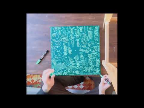 A canvas made for the Westerberg family featuring a light green background with an even lighter green lettering, balanced by a luminous 24K gold paint seal in the centre.