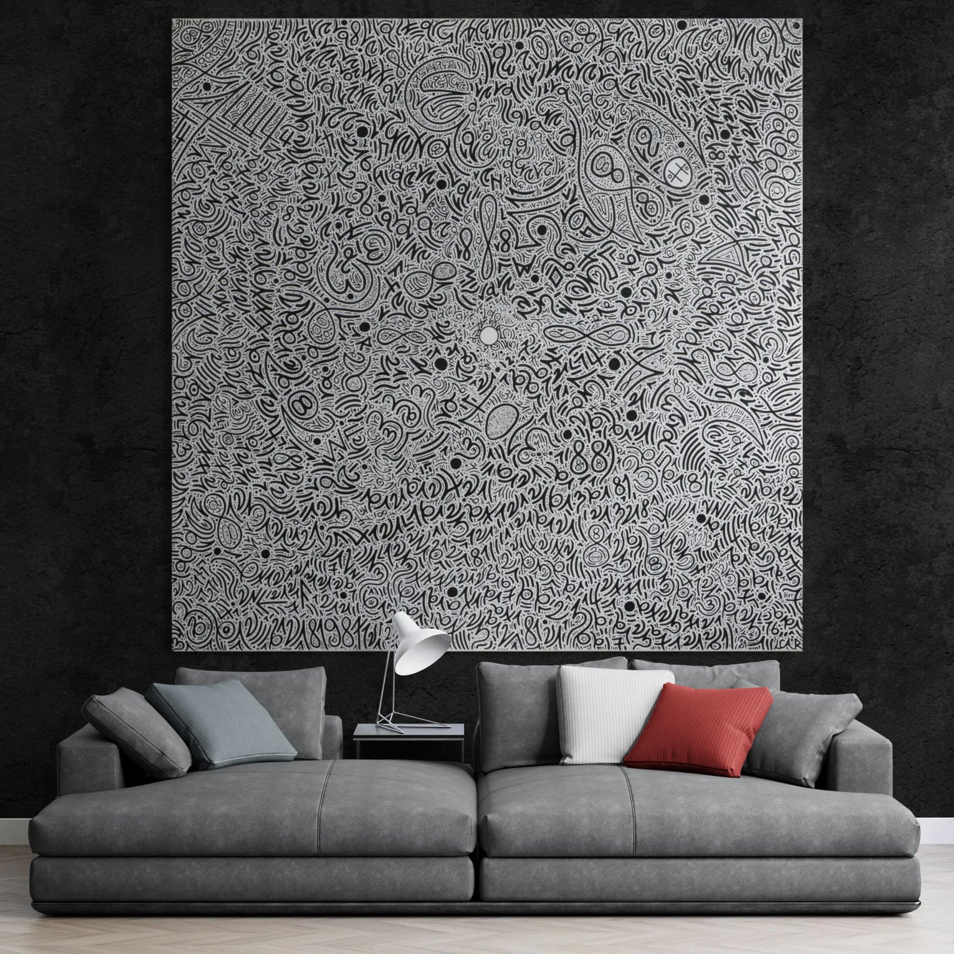 Description: A clean, modern artwork with black numerical lettering set against a soft white cotton canvas.